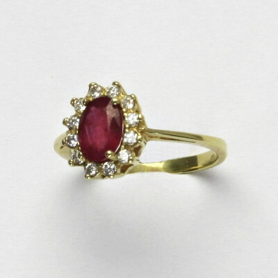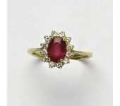 Prsten je vyroben ze žlutého zlata. Je zdoben přírodním rubínem o rozměru 7x5 mm a malými čirými zirkony. Materiál je zlato 585/1000. Orientační váha prstenu ve velikosti 54 je 2,37 g.