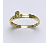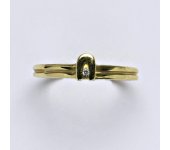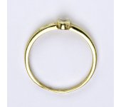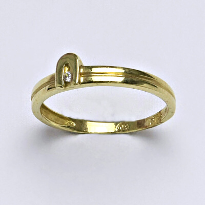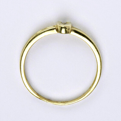 Prsten je vyrobený ze žlutého zlata, zdobený syntetickým zirkonem o průměru 1 mm a naznačeným průřezem po části obvodu prstýnku. Materiál je zlato 14 karátů 585/1000.