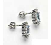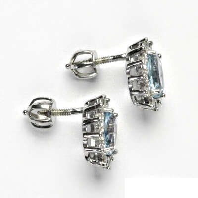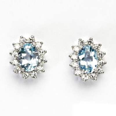 Náušnice z bílého zlata jsou zdobeny malými čirými zirkony a přírodním topazem sky 7x5 mm. Materiál je zlato 585/1000. Rozměr náušnice je 11x10 mm. Náušnice mají zapínání na šroubek. Orientační váha náušnic je 3,1 g.