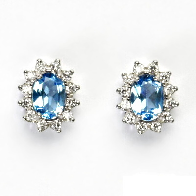 Náušnice z bílého zlata jsou zdobeny malými čirými zirkony a přírodním topazem swiss 7x5 mm. Materiál je zlato 585/1000. Rozměr náušnice je 11x10 mm. Náušnice mají zapínání na šroubek. Orientační váha náušnic je 3,1 g.