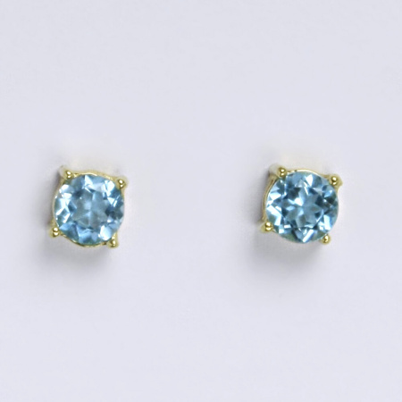 Zlaté náušnice ze žlutého zlata 14 karátů s přírodním topazem. Velikost kamene je 5 mm. Náušnice mají zapínání na na šroubek. Orientační váha náušnic je 1,4 g.