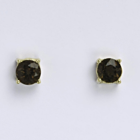 Zlaté náušnice ze žlutého zlata 14 karátů s přírodní záhněda. Velikost kamene je 5 mm. Náušnice mají zapínání na šroubek. Orientační váha náušnic je 1,4 g.