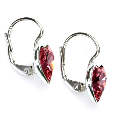 Náušnice z bílého zlata jsou zdobeny Swarovski krystaly ve tvaru srdíčka. Barva krystalu je rose. Materiál je zlato 585/1000. Orientační váha náušnic je 3,6 g. Celková výška náušnice je 16 mm a šířka je 9 mm.