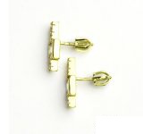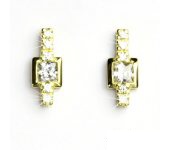 Náušnice ze žlutého zlata jsou zdobeny čirými zirkony, největší má rozměr 4x4 mm.. Materiál je zlato 585/1000. Náušnice mají zapínání na šroubek. Orientační váha náušnic je 2,67 g.