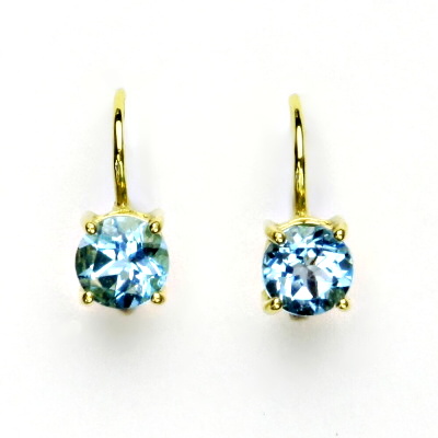 Zlaté náušnice ze žlutého zlata s přírodním topazem swiss. Velikost kamene je 6 mm. Náušnice mají zapínání na klasický patent. Celková výška náušnic je 15 mm. Orientační váha náušnic je 2,16 g.