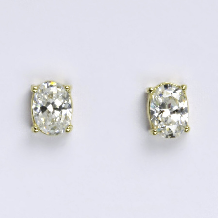 Zlaté náušnice ze žlutého zlata 14 karátů s čirým zirkonem. Velikost kamene je 7 x 5 mm. Náušnice mají zapínání na šroubek. Orientační váha náušnic je 1,74 g.