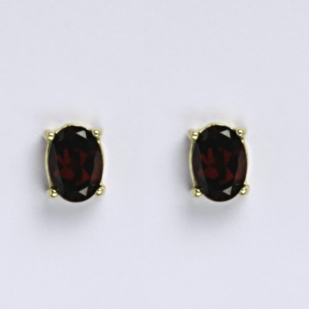 Zlaté náušnice ze žlutého zlata 14 karátů s přírodním granátem. Velikost kamene je 7 x 5 mm. Náušnice mají zapínání na šroubek. Celková výška náušnice je 14 mm. Orientační váha náušnic je 1,74 g.