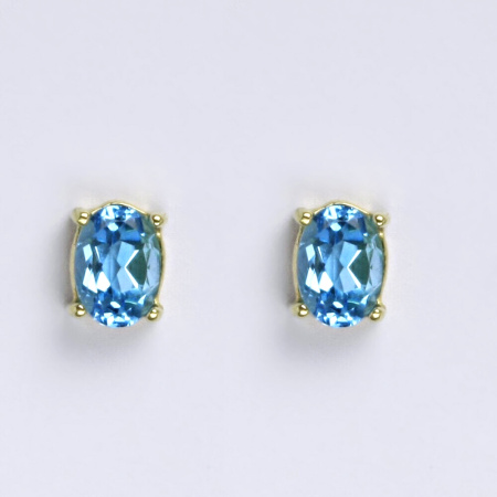 Zlaté náušnice ze žlutého zlata 14 karátů s přírodním topazem. Velikost kamene je 7 x 5 mm. Náušnice mají zapínání na šroubek. Orientační váha náušnic je 1,74 g.