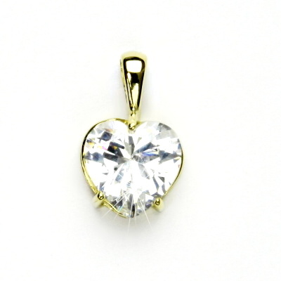 Přívěsek ze žlutého zlata s čirým zirkonem ve tvaru srdce o rozměru 10x10 mm. Materiál je zlato 585/1000. Orientační váha přívěsku je 2,26 g. Rozměr přívěsku je 17 mm včetně úchytu na výšku a 10 mm na šířku.