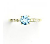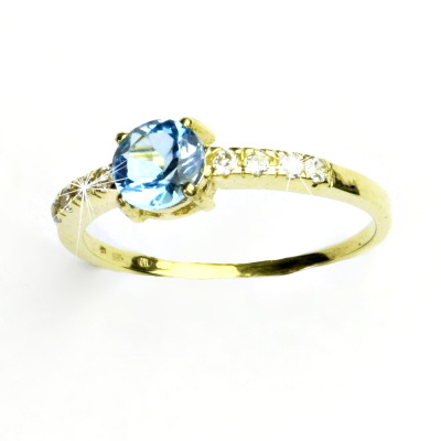 Zlatý prstýnek je zdoben malými čirými zirkony o průměru 1,75 mm a přírodním topazem swiss o průměru 6 mm. Prsten nabízíme v různých veliskost. Materiál prstenu je zlato 585/1000. Orientační váha prstenu ve velikosti 54 je 2,10 g.