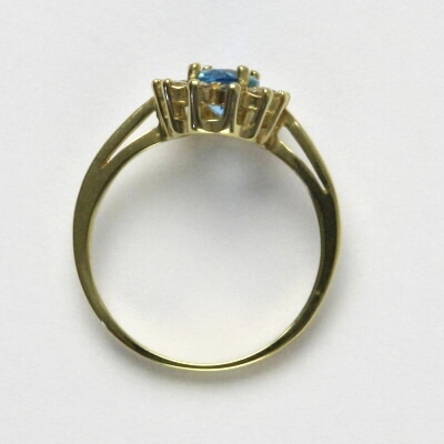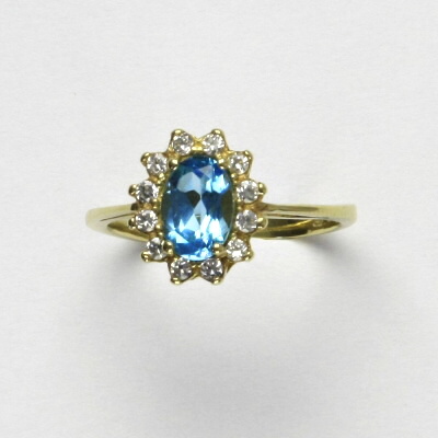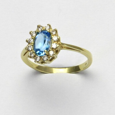 Prsten je vyroben ze žlutého zlata. Je zdoben přírodním topazem swiss o rozměru 7x5 mm a malými čirými zirkony. Materiál je zlato 585/1000. Orientační váha prstenu ve velikosti 54 je 2,37 g.