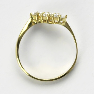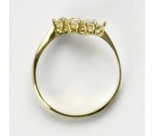 Prsten je vyrobený ze žlutého zlata. Do zlata je zafasované 4 zirkony. Materiál je zlato o ryzosti 14 karátů 585/1000. Orientační váha prstenu je 1,76 g. Prsten máme skladem ve velikosti 57. Průměr zirkonu je 4 mm.