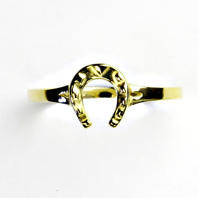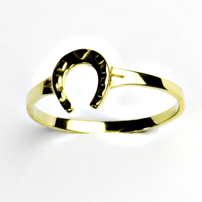 Prstýnek ze žlutého zlata ve tvaru podkovy o rozměru 9x9 mm. Materiál je zlato 585/1000. Orientační váha prstenu ve ve velikosti 64 je 1,96 g.