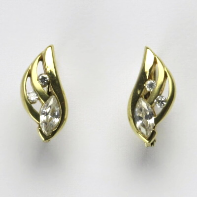 Náušnice jsou vyrobeny ze žlutého zlata o ryzosti 14 karátů 585/1000. Náušnice jsou zdobeny syntetickými zirkony. Orientační váha je 2,45 g. Zapínání je na klapku. Rozměr náušnice na výšku je 14 mm.