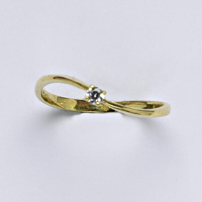 Prsten je vyrobený ze žlutého zlata, je zdobený syntetickým zirkonem 2 mm. Materiál je zlato 14 karátů 585/1000.