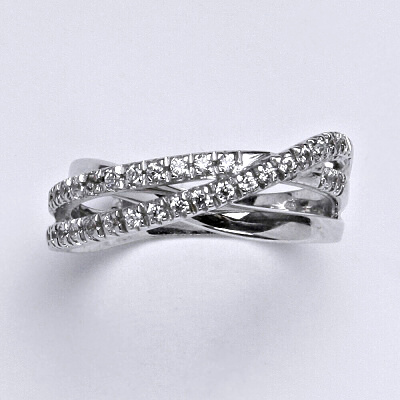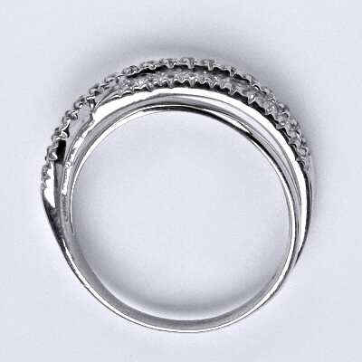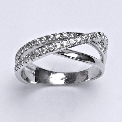 Prstýnek je vyrobený z bílého zlata 14 karátů 585/1000. Prsten je zdobený syntetickými zirkony.