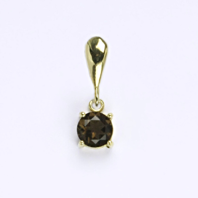 Zlatý přívěšek ze žlutého zlata 14 karátů s přírodní záhnědou. Velikost kamene je 6 mm. Celková výška přívěšku je 18 mm. Orientační váha náušnic je 1,08 g.