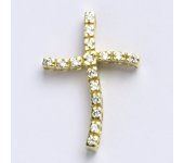 Přívěsek, křížek, je vyroben ze žlutého zlata 14 karátů 585/1000, zdobený syntetickým zirkonem. Celková velikost přívěsku je 25 mm. Při více kusech skladem je váha orientační.