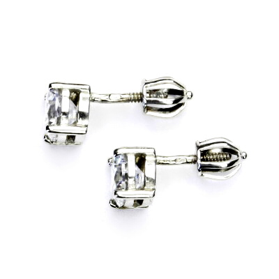 Zlaté náušnice z bílého zlata s přírodním křišťálem o průměru 6 mm. Materiál je zlato 585/1000. Orientační váha náušnic je 1,92 g. Náušnice mají zapínání na šroubek.