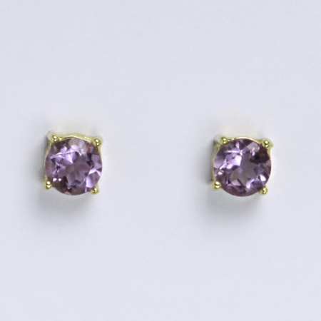Zlaté náušnice ze žlutého zlata 14 karátů s přírodním ametystem. Velikost kamene je 5 mm. Náušnice mají zapínání na na šroubek. Orientační váha náušnic je 1,4 g.