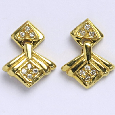 Náušnice vyrobené ze žlutého zlata 585/1000 osazeny syntetickým zirkonem. Zapínání na náušnicích je puzeta. Velikost náušnice je 17 mm. Při více kusech skladem, je váha jen orientační.