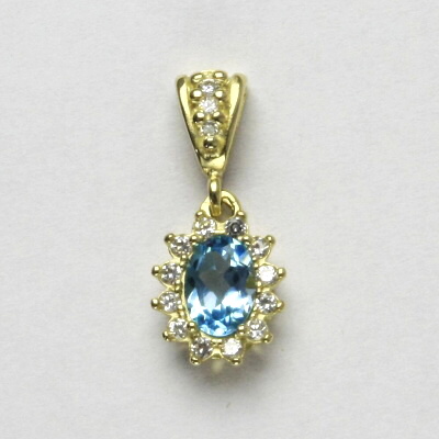 Přívěsek je vyroben ze žlutého zlata. Je zdoben přírodním topazem swiss o rozměru 7x5 mm a malými čirými zirkony. Celková výška přívěsku je 22 mm. Materiál je zlato 585/1000. Orientační váha přívěsku je 1,85 g
