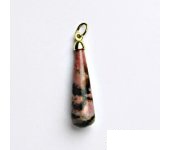 Zlatý přívěsek je zdoben přírodním kamenem epidot-unakit. Materiál je zlato 585/1000. Orientační váha přívěsku je 3 g. Rozměr přívěsku je 36 mm včetně očka na výšku a 8 mm na šířku.