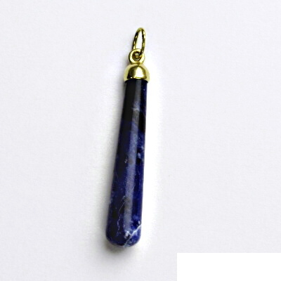 Zlatý přívěsek je zdoben přírodním kamenem sodalit. Materiál je zlato 585/1000. Orientační váha přívěsku je 1,98 g. Rozměr přívěsku je 39 mm včetně očka na výšku a 6 mm na šířku.
