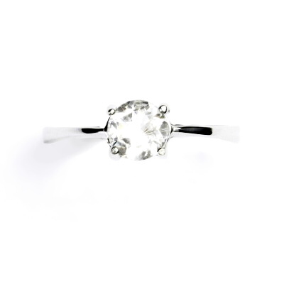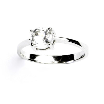 Prstýnek z bílého zlata je zdoben přírodním křišťálem o průměru 6 mm.Materiál je zlato 585/1000. Orientační váha prstenu ve velikosti 54 je 2,36 g.