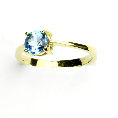 Prstýnek ze žlutého zlata je zdoben přírodním topazem swiss o průměru 6 mm.Materiál je zlato 585/1000. Orientační váha prstenu ve velikosti 54 je 2,36 g.