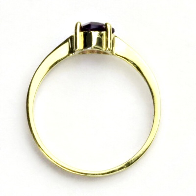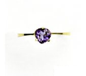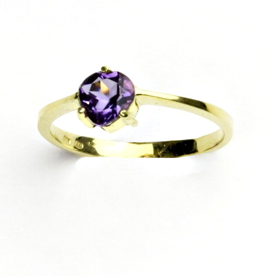 Prstýnek ze žlutého zlata je zdoben přírodním tmavým ametystem, ve tvaru srdíčka, o rozměru 6x6 mm. Materiál je zlato 585/1000. Orientační váha prstenu ve velikosti 55 je 2 g. Prstýnek nabízíme v různých velikostech.