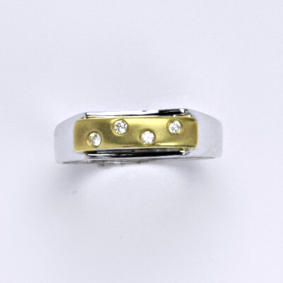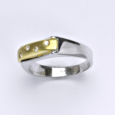 Prsten je v kombinaci bílé a žluté zlato 14 karátů 585/1000, zdobený syntetickým zirkonem. Velikost prstenu je 55. Při více kusech skladem je váha šperku pouze orientační.