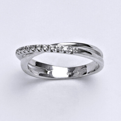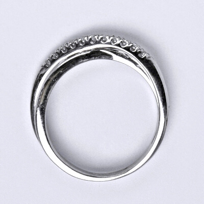 Prstýnek je vyrobený z bílého zlata 14 karátů 585/1000. Prsten je zdobený syntetickými zirkony.