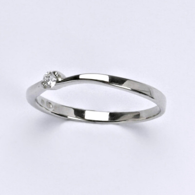 Zlatý prsten z bílěho zlata s diamantem. Průměr diamantu je 2,40 mm kvality Si1/H a mají dohramady 0,06 karátů. Váha prstenu je 1,38 g. Prsten má povrchovou úpravu čisté rhodium.