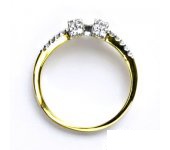 Prstýnek ze žlutého je zdoben diamany kvality SI/H. Dohromady mají 0,35 ct. Orientační váha prstenu je 3,64 g. Prstýnek máme skladem ve velikosti 54. Materiál je zlato 750/1000.