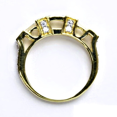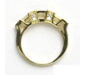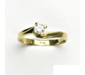 Prstýnek ze žlutého zlata je zdoben čirými zirkony. Materiál je zlato 585/1000. Prstýnek máme skladem ve velikosti 51. Orientační váha prstýnku je 2,83 g.