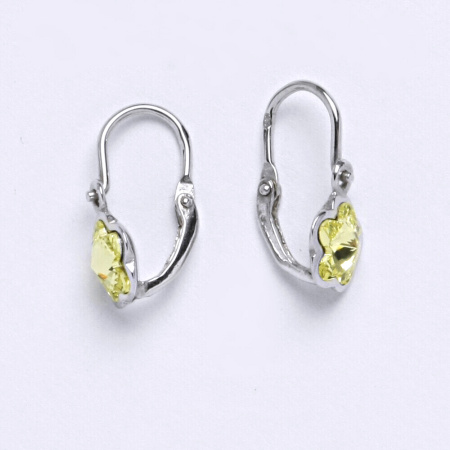 Tyto šperky - dětské náušnice kombinují klasické zapínání s moderním krystalem Swarovski. Orientační váha 1,10 g. Zlato 14 ct 585/1000. Velikost náušnice na výšku je 14 mm.
