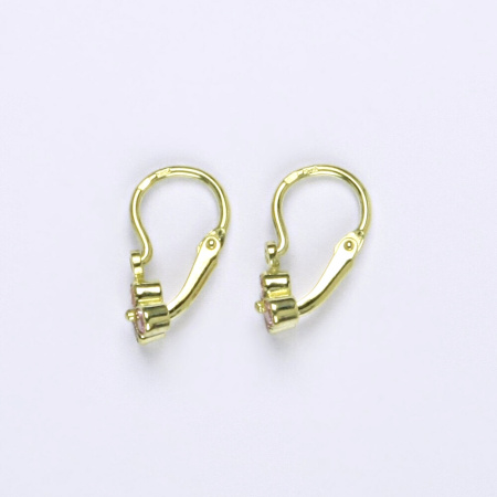 Dětské náušnice ze žlutého zlata s růžovými zirkony. Výška náušnice je 11 mm. Orientační váha náušnic je 0,83 g.