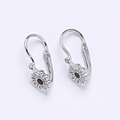 Dětské náušnice bílé zlato s přírodním granátem kytičky. Celková velikost náušnice je 14 mm. Orientační váha náušnic je 0,97 g.Hmotnost drahého kovu u tohoto zboží je nižší než 0,5 g za 1 kus ( 1 gram u 1 páru ), a proto je opuncováno rizostní značkou nebo popřípadě značkou výrobce.