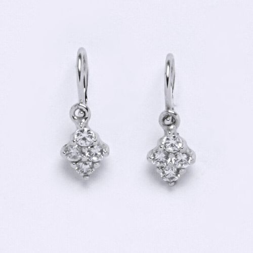 Dětské náušnice bílé zlato s bílým kamínkem, čtverečky. Celková velikost náušnice je 15 mm. Orientační váha náušnic je 1,19 g.