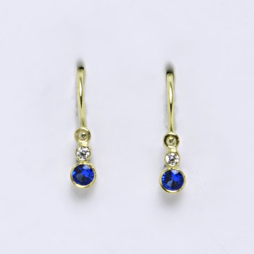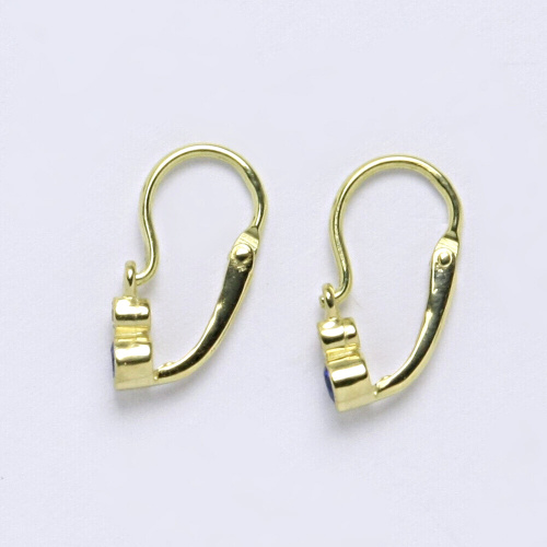Dětské náušnice žluté zlato s modrým a bílým kamínkem, kolečka. Celková velikost náušnice je 14 mm. Orientační váha náušnic je 0,82 g.Hmotnost drahého kovu u tohoto zboží je nižší než 0,5 g za 1 kus ( 1 gram u 1 páru ), a proto je opuncováno rizostní značkou nebo popřípadě značkou výrobce.