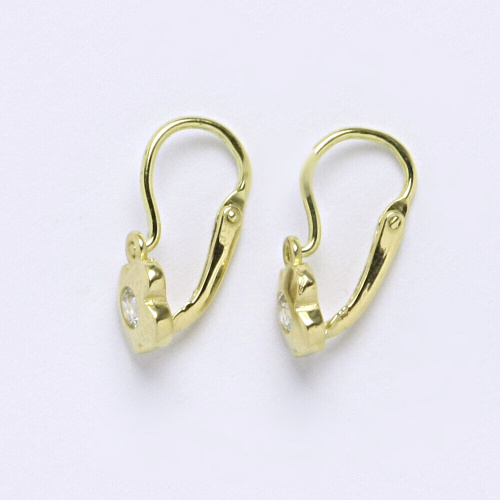 Dětské náušnice žluté zlato s bílým kamínkem, kytičky. Celková velikost náušnice je 14 mm. Orientační váha náušnic je 1,10 g.