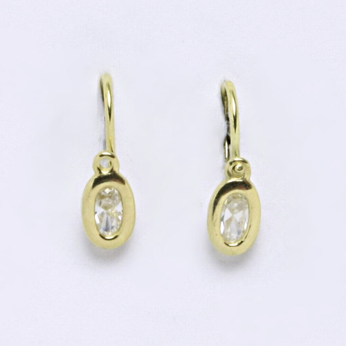 Dětské náušnice žluté zlato s bílým kamínkem. Celková velikost náušnice je 15 mm. Orientační váha náušnic je 1,05 g.