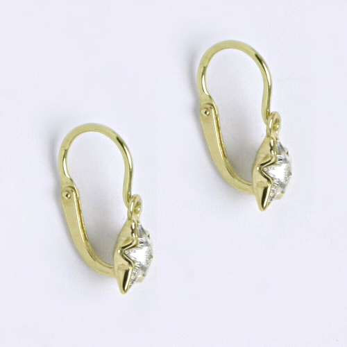 Tyto šperky - dětské náušnice kombinují klasické zapínání s moderním krystalem Swarovski čirý. Orientační váha 1,10 g Zlato 14 ct 585/1000.Velikost náušnice na výšku 14 mm.