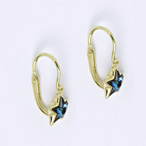 Tyto šperky - dětské náušnice kombinují klasické zapínání s moderním krystalem Swarovski bermuda blue. Orientační váha 1,10 g Zlato 14 ct 585/1000.Velikost náušnice na výšku 14 mm.