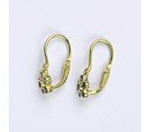 Zlaté náušnice se spinelem a akvamaríny ze žlutého zlata. Výška náušnice je 12 mm. Orientační váha náušnic je 0,89 g.