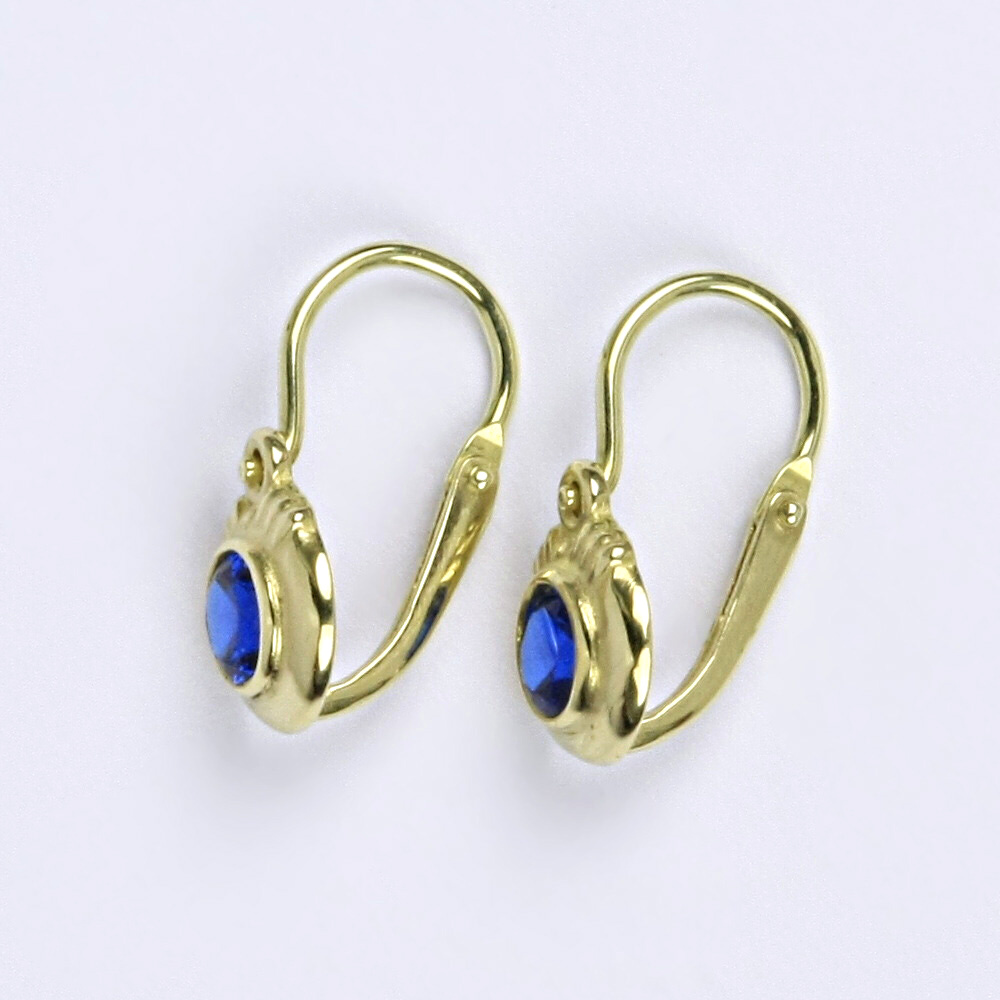 Zlaté náušnice se spinelem ze žlutého zlata. Výška náušnice je 15 mm. Orientační váha náušnic je 1,25 g.