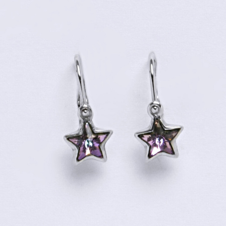 Dětské náušnice z bílého zlata 14 karátů. Celková velikost náušnice 14 mm orientační celková váha 1,3 g. Barva krystalu Swarovski hvězda je vitrail light.