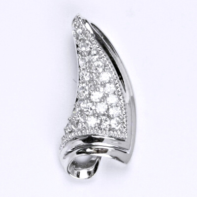 Přívěsek vyrobený z bílého zlata 14 karátů 585/1000, bohatě zdobený syntetickým zirkonem. Celková velikost přívěsku včetně ouška je 22 mm. Při více kusech skladem je váha orientační.