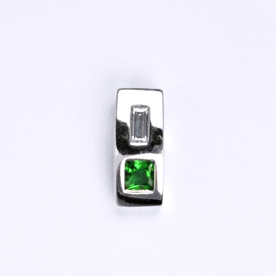 Přívěsek vyrobený z bílého zlata 14 katárů 585/1000, zdobený syntetickým zirkonem a zeleným kamínkem. Celková velikost přívěsku včetně ouška je 13 mm. Při více kusech skladem je váha orientační.